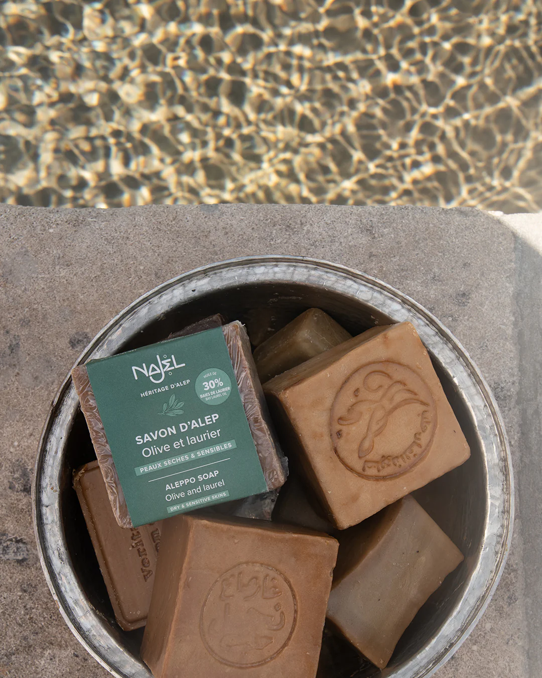 Avand o istorie de peste 3500 de ani, Sapunul de Alep este obtinut din ingrediente 100% naturale si reprezinta cu adevarat nobil prin puritatea compusilor sai: ulei de Masline, ulei de Dafin, apa si soda naturala din sare de mare. Nu contine coloranti artificiali, parfumuri sintetice, aditivi chimici sau grasimi de origine animala si este cel mai vechi sapun natural solid din lume.